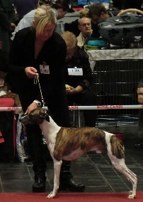 14.02.2016 CACIB Fredericia/ DK Richterin Frau Marie- Joseé Melchior/ Lux eine sehr entspannte Ausstellung in allen Belangen. So hatten wir genug Platz in der Halle am Ring und konnten, wie alle, uns bequem niederlassen. Whippets mal wieder als Letztes und so hatten wir Zeit und konnten uns noch einmal mit den Bänderfarben und der anderen Art der Platzierungen beschäftigen. Es waren 17 Rüden gemeldet. Sylvianne's Nagano dann in der Championklasse ein V3, CK anschließend im Stechen CK 5, Sylvianne's Djuma V 1 Best Veteran, CK, anschließend beim Stechen CK 6. Ein tolles Ergebnis bei so vielen Rüden.